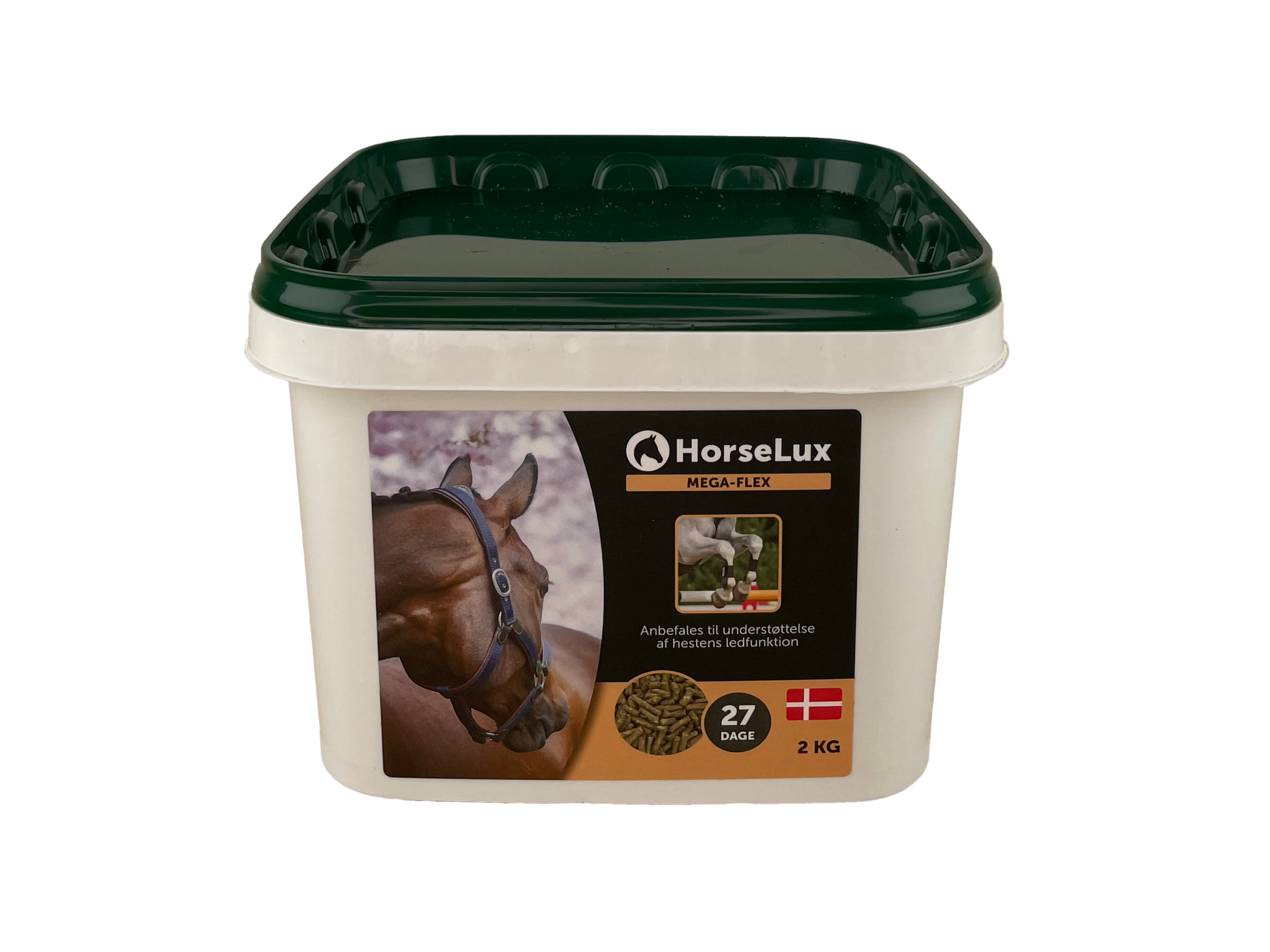 HorseLux Mega-Flex er et dagligt tilskud, baseret på naturligt krebsdyrsmel, samt hyben og kanel. Produktet er sammensat med henblik på at understøtte betingelserne i hestens led.